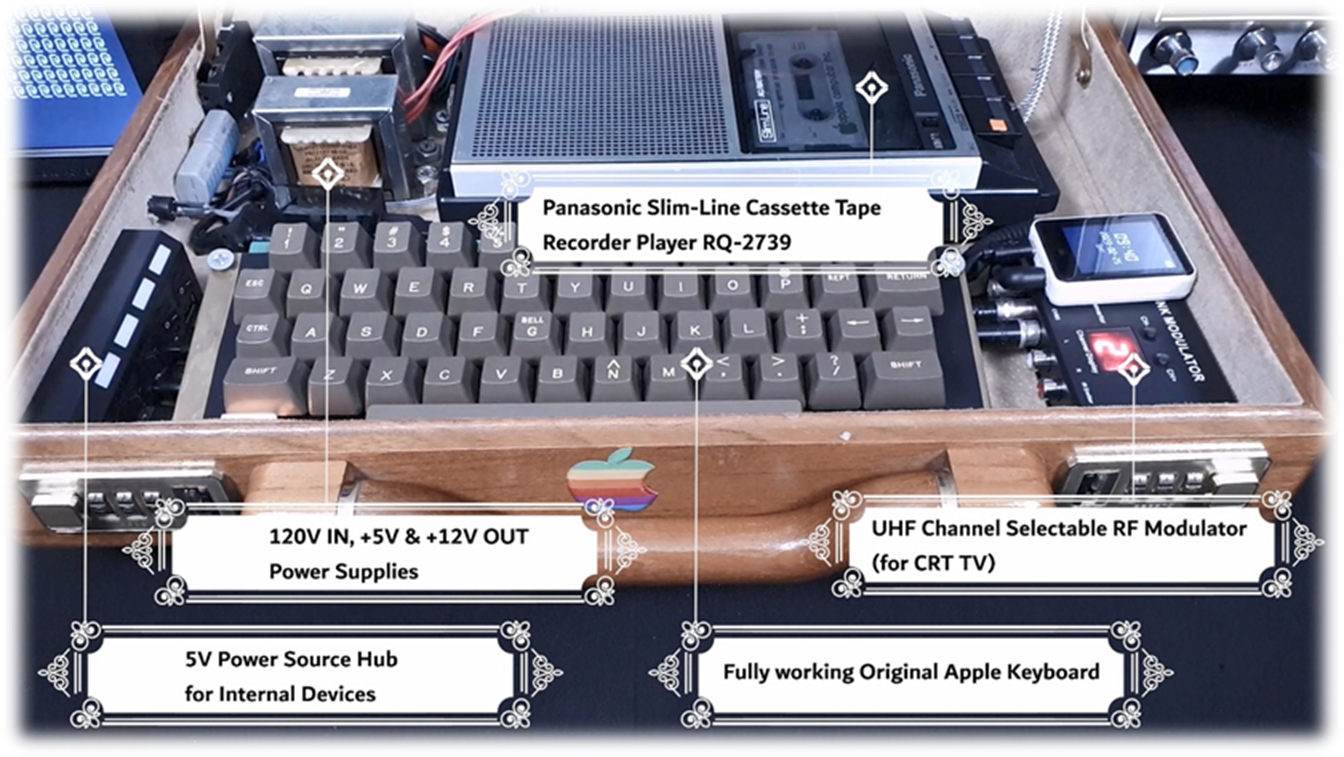 · Panasonic Cassette Tape Recorder Player RQ-2739 · AV to UHF Modulator TM70 · 2 display ports support (AV, RF Antenna TV) · 2 Sockets power strip · Integrated 4 ports 5V USB power source · External detachable motherboard fan |