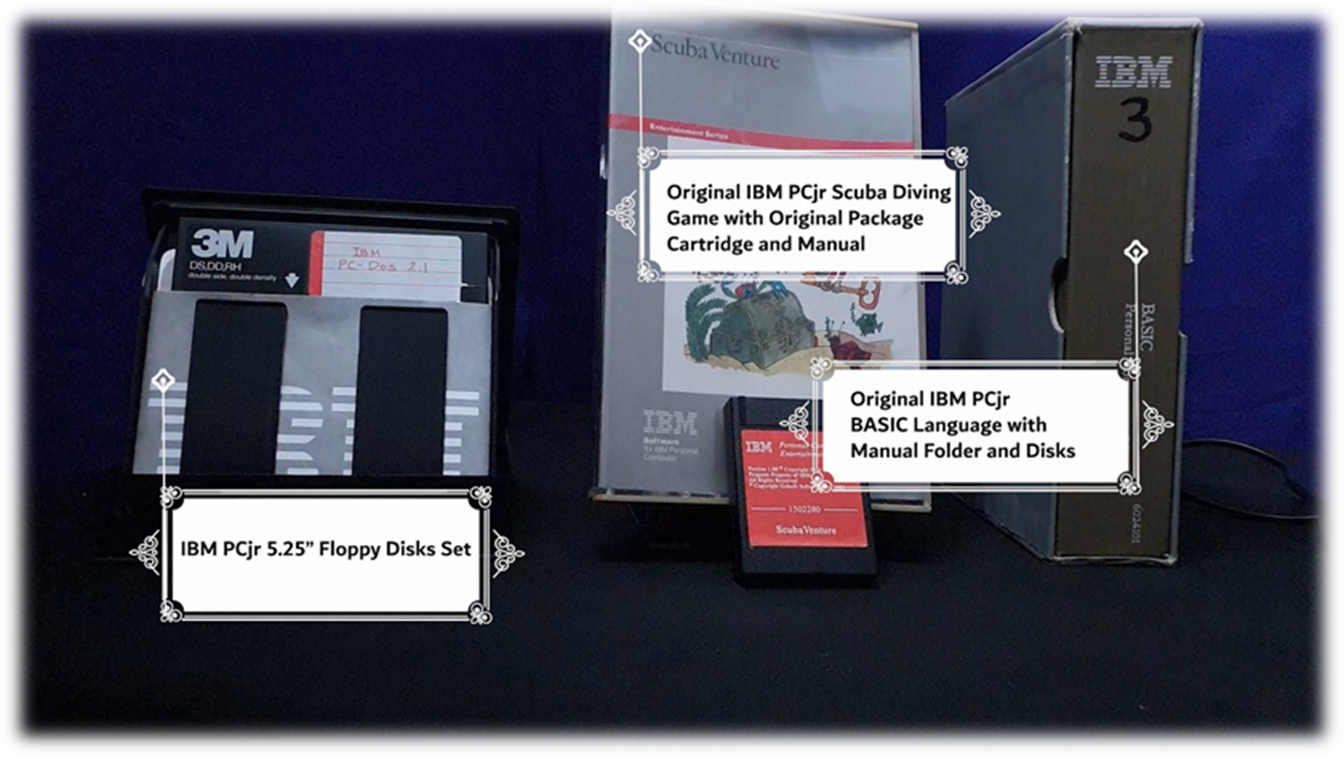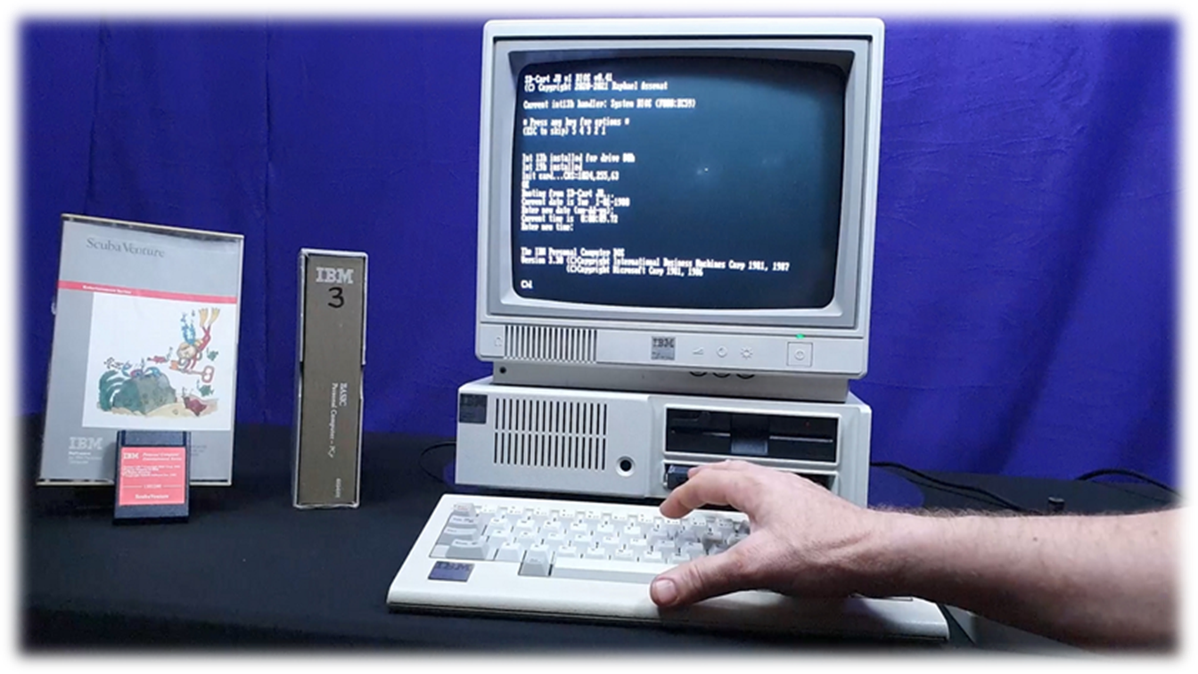 · Original IBM BASIC v3.0 cartridge and manual · Original IBM SCUBA VENTURE cartridge and manual ·