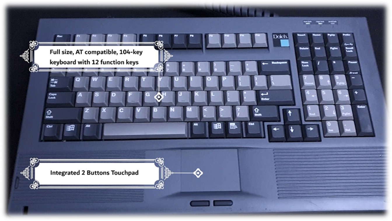 Full size, AT compatible, 104-key keyboard with 12 function keys and dedicated cursor keys |