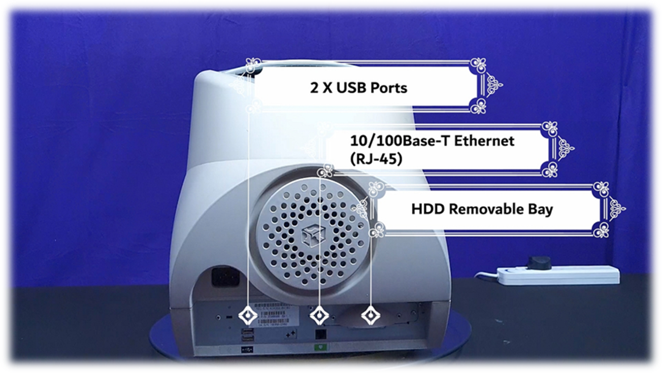 · 4 x USB ports · 56K modem port · Headphone jack · Built-in microphone |