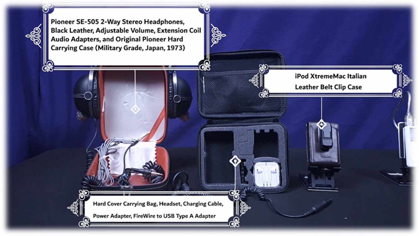 · Original Wall AC Adapter · Original FW Cable · Headset · Vintage Pioneer SE-505 2-Way Stereo Headphones, Black Leather, Adjustable Volume, with Original Pioneer Hard Carrying Case (Military Grade, Japan, 1973) · XtremeMac Italian Leather Belt Clip Case |
