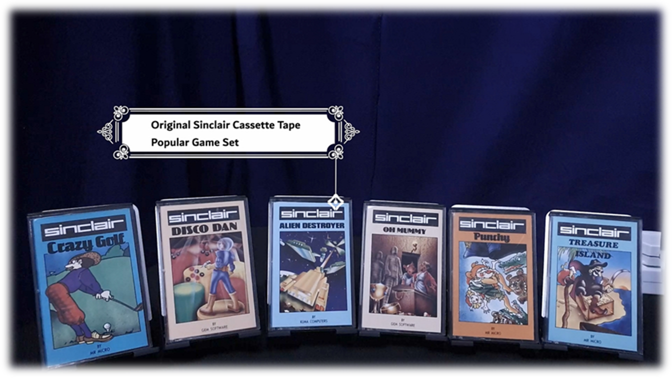 · Original Packaging Box and Inserts · Original AC Adapter · Original Joystick · Original User Manual · RGB to TV SCART + Composite Cable · Original Sinclair Games Mixed Bundle Cassette Tapes · Unique SD to FDD drive simulator cartridge: · 8 GB SD pre-loaded with games and apps |