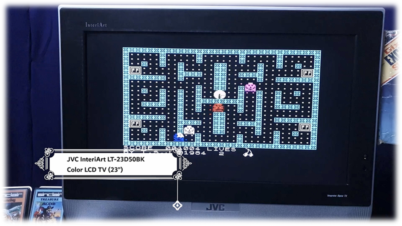External JVC InteriArt LT-23D50BK Color LCD TV (23") · Graphics: 256 × 192 @ 8 Colors · Text: 32 Chars × 24 Lines |