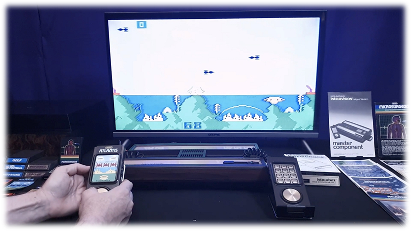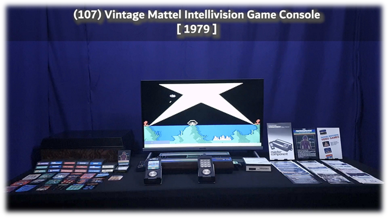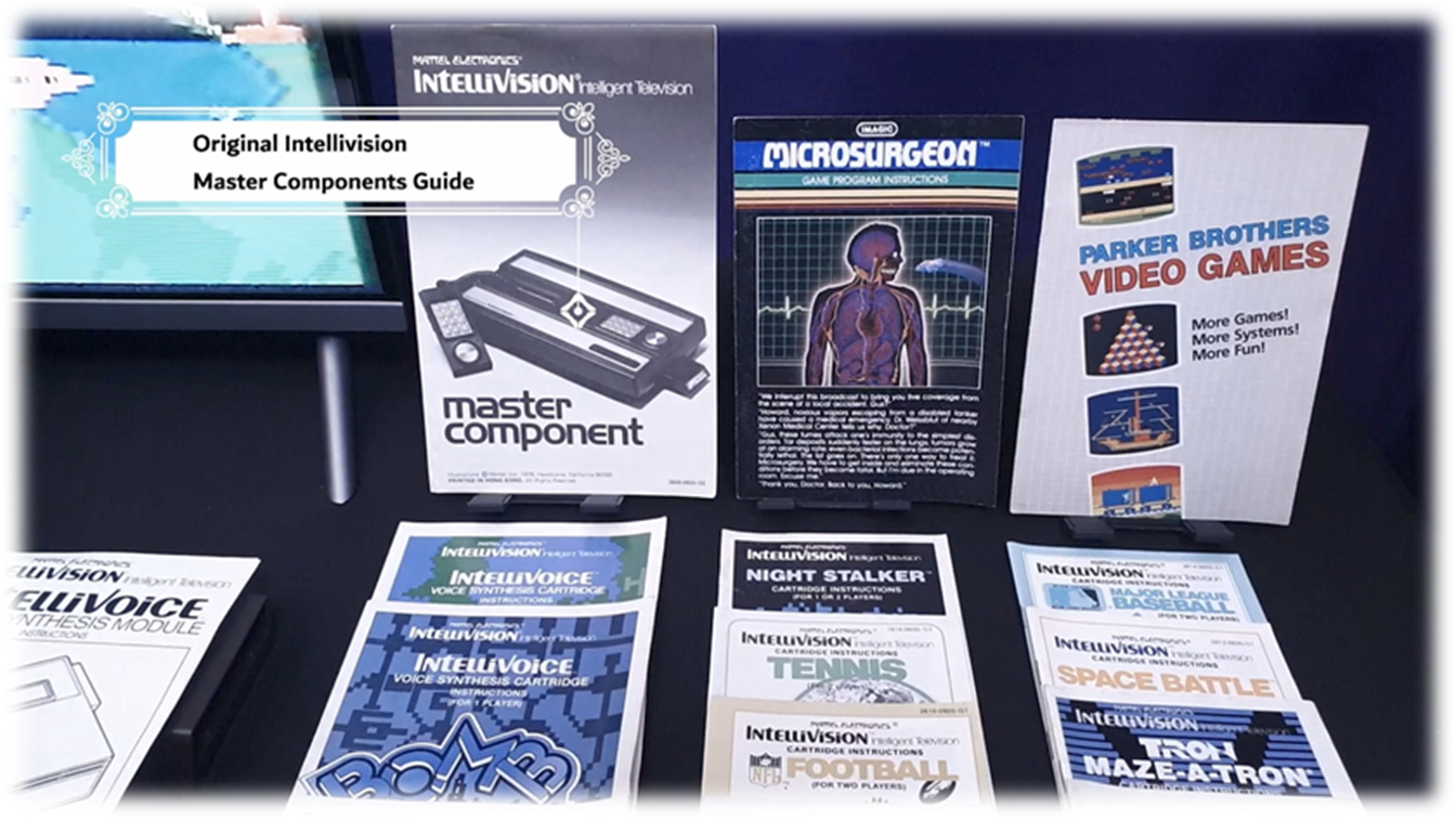· Storage Center Organizer Case for Console & Games · Original IntelliVision Console & IntelliVoice Manuals · Controller Overlays for Games · Instruction Manuals for Games · Voice Synthesis Module · Game Cartridges Bundle: · Atlantis, Night STALKER, NBA Basketball, Lock N' Chase, Tron Maze-a-tron, Space Battle, Poker & Black Jack, Bowling, Auto-Racing, Venture, Baseball, Boxing, Tennis, B-17 Bomber, Bomb Squad, Space Spartans, Tron- Deadly disc, Microsurgeon, Checkers, Horse Racing, Astrosmash, PGA Golf, Donkey Kong) |