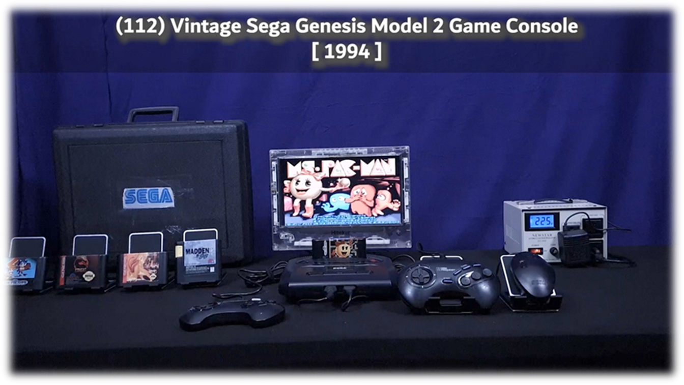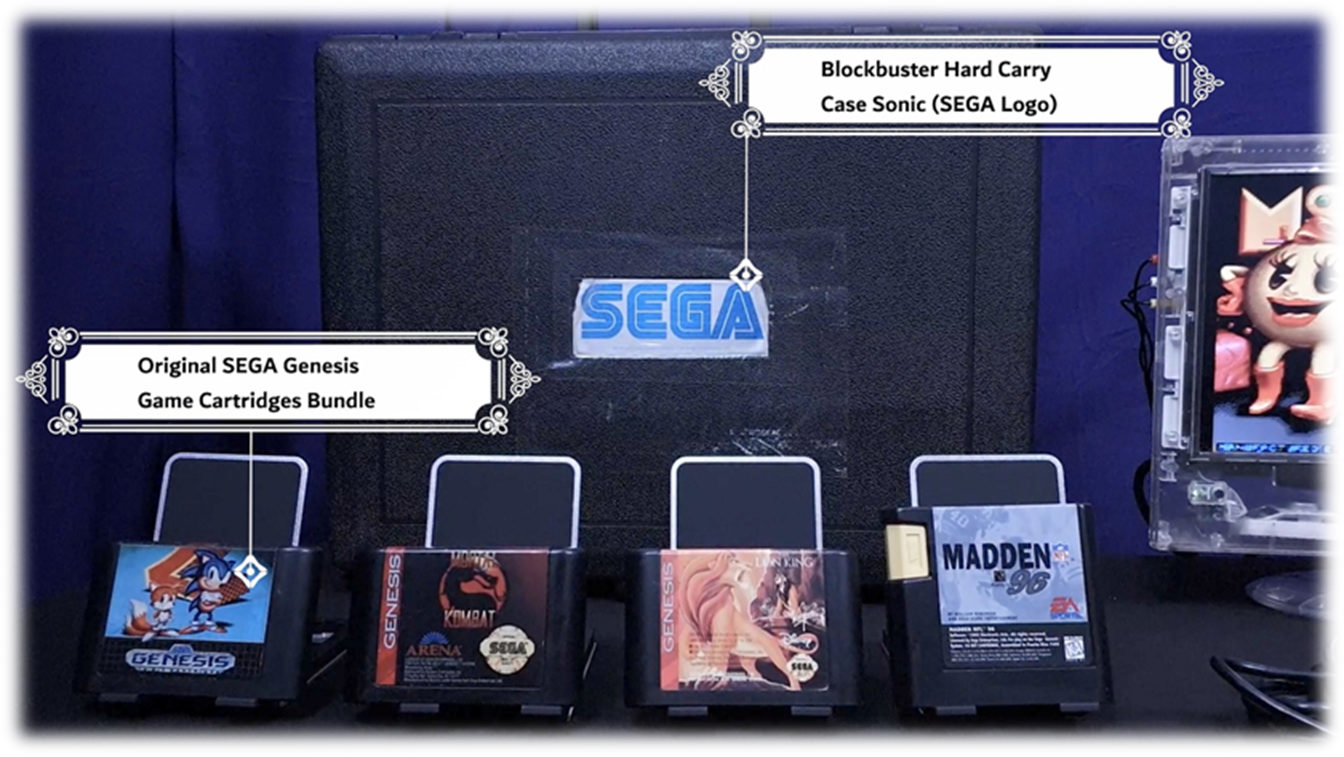 · Original SEGA AC Adapter · Original Joystick Controller · Extra High Frequency Turbo Controller · Blockbuster Hard Carry Case Sonic (SEGA Logo) · Original Game Cartridges Bundle: · Miss PAC-MAN · SONIC · LION KING · KOMBAT · EA Sport MADDEN 96 |