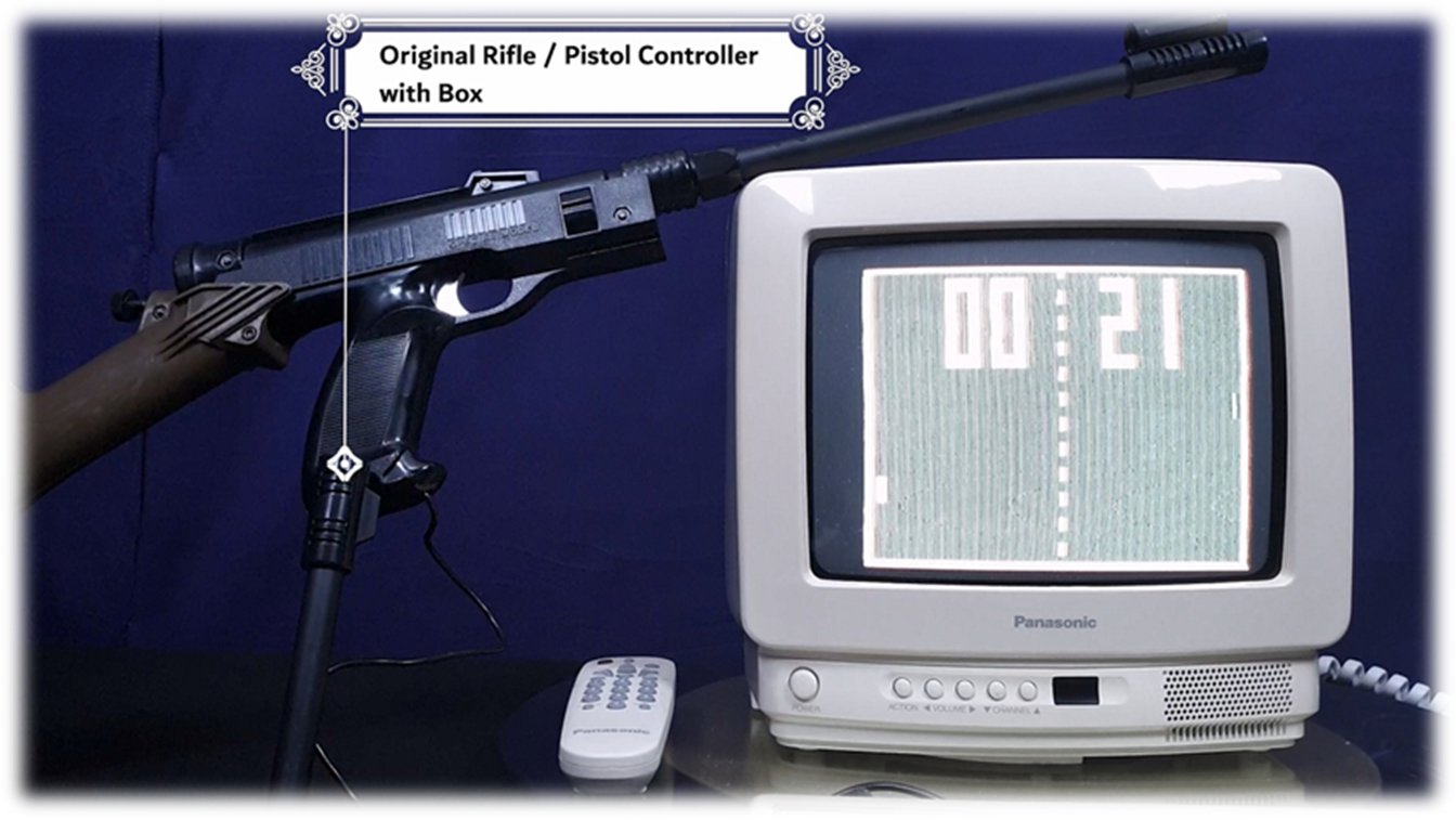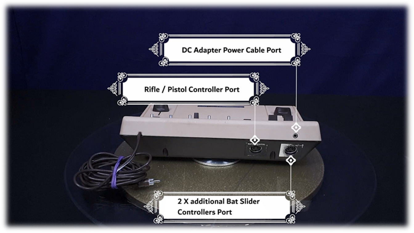 · Built-in RF TV port with cable · Additional Bat Slider Controllers port · Rifle/Pistol port · DC power port |