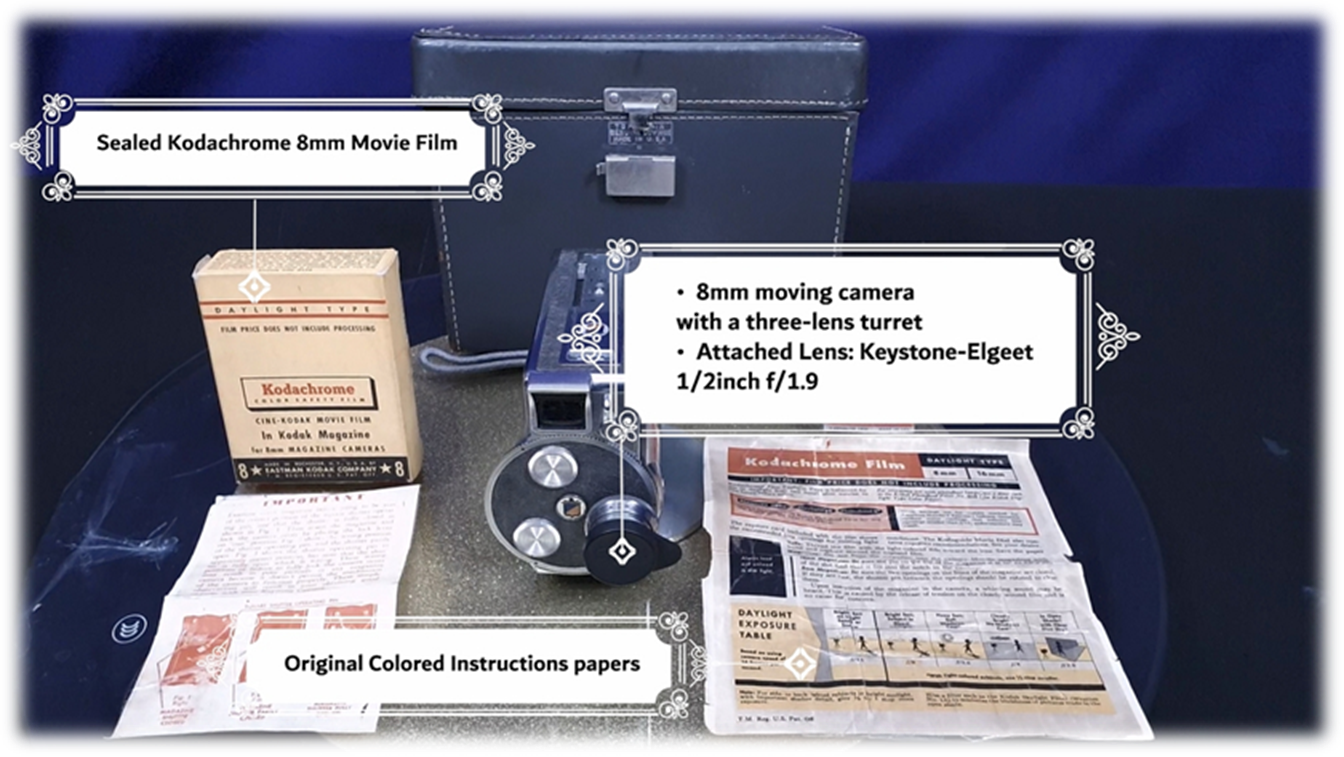 · Original Keystone Premium Leather Organizer Carrying Case · Original Colored Instructions papers · Sealed Kodachrome 8mm Movie Film · Original Optical Glass Lens Filters |