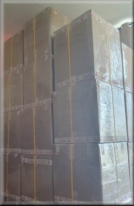 · Carton 55X70 = 5 · Carton 45X45 = 13 · Carton 60X60 = 52 · TOTAL = 70 · Total Weight (AVG) = 1350 KG |
